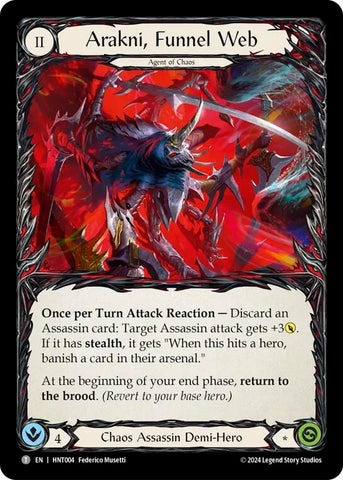 Once per Turn Attack Reaction — Discard an Assassin card: Target Assassin attack gets +3POWER. If it has stealth, it gets "When this hits a hero, they banish a card from their arsenal."