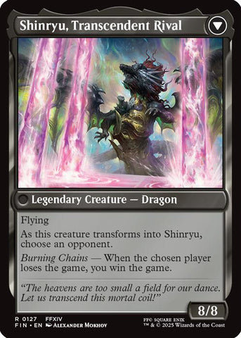 Flying As this creature transforms into Shinryu, choose an opponent. Burning Chains — When the chosen player loses the game, you win the game.