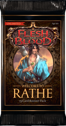 Each Flesh and Blood Welcome to Rathe Booster display contains 24 Booster Packs, each with 15 randomly inserted cards. Rule book not included.